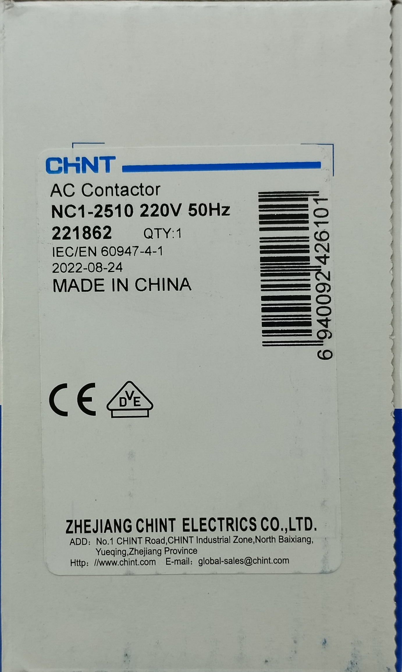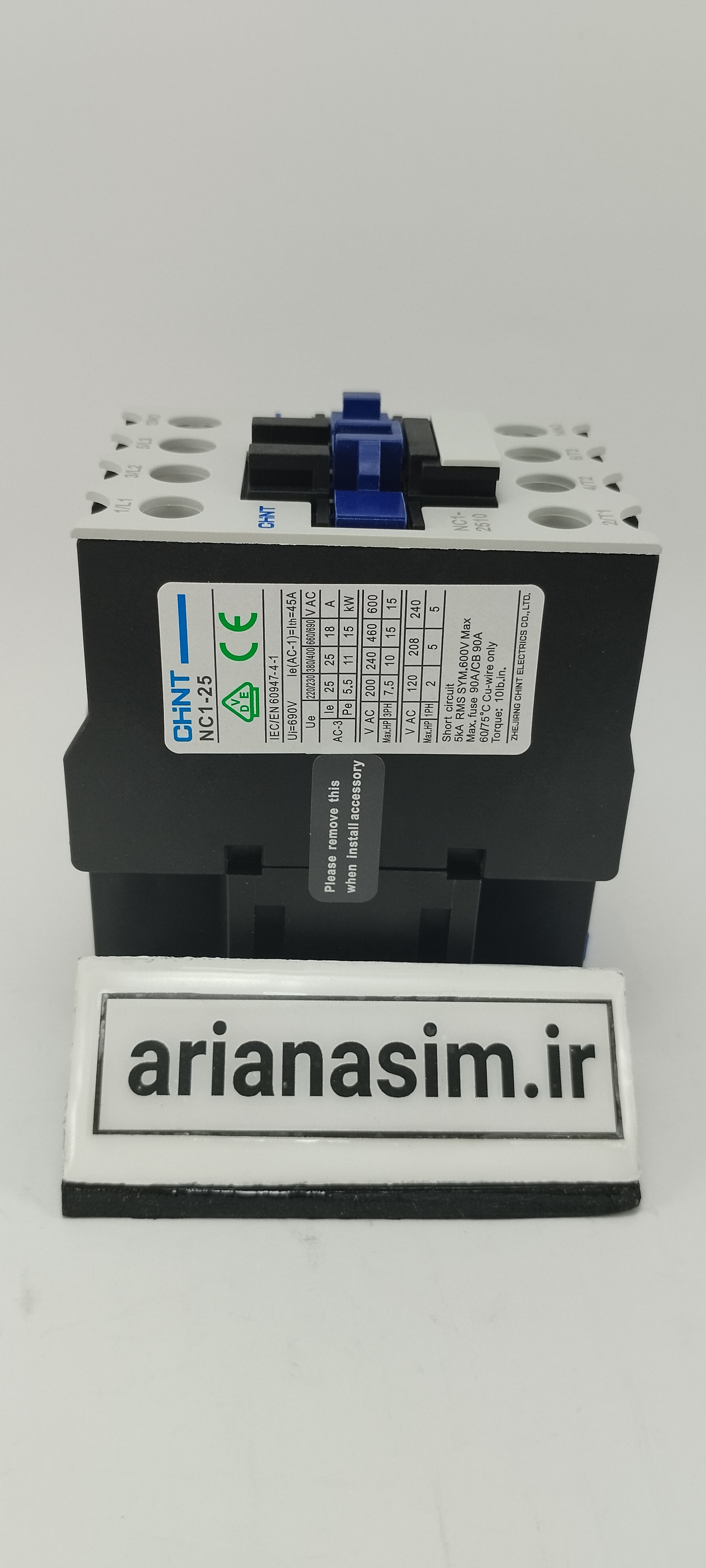 کنتاکتور چینت CHINT NC1-2510 دارای ولتاژ 220 ولت و آمپراژ 25 آمپر است. میتوان به عنوان کلیدهای مغناطیسی وابسته به برق شمرد.معمولا از کنتاکتورها در تابلوهای برق و برق ساختمان استفاده میکنند.