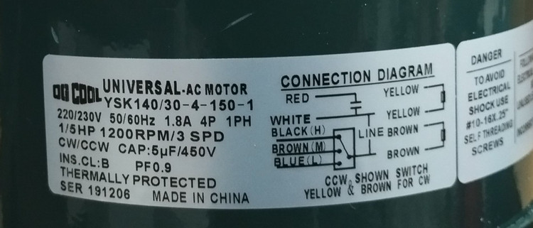 موتور فن کولر پنجره ای یونیورسال یا سوپرائی 1/5HP سیم پیچ مس مدل YSK140/30-4-185-1